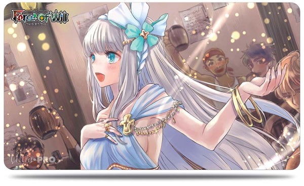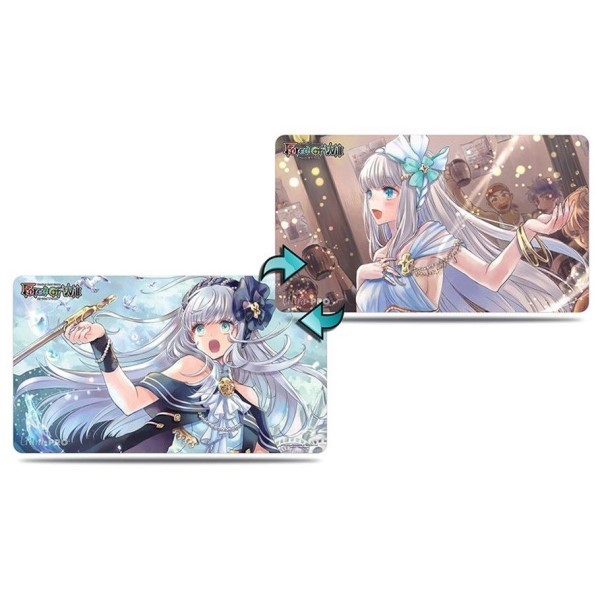 Join Shion in her rebellion against Valentina with this new Double-Sided Force of Will, J-Ruler themed play mat! Choose to relax and listen to her soothing music at the local tavern, or J-Activate along with this J-Ruler to destroy your foes! Play mat size approximately 24in wide x 13.5in tall.