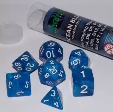 Set of great quality dice in plastic tube (7 dice per pack).