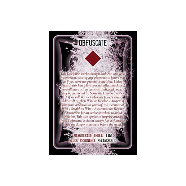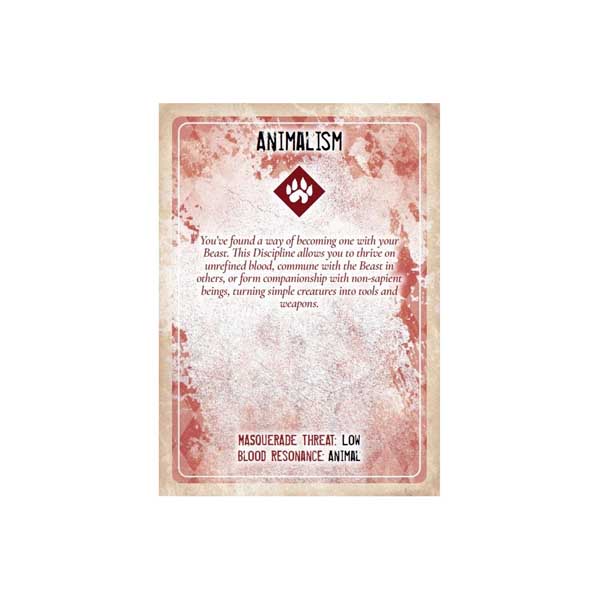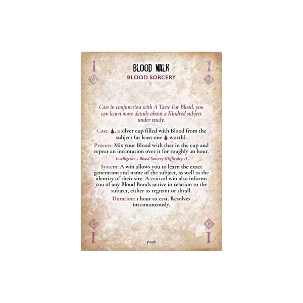 - A total of 121 full colour cards 80 Disciplines and 41 Blood Sorcery powers and rituals, and Thin-Blood Alchemy abilities from the Vampire: The Masquerade core rulebook.