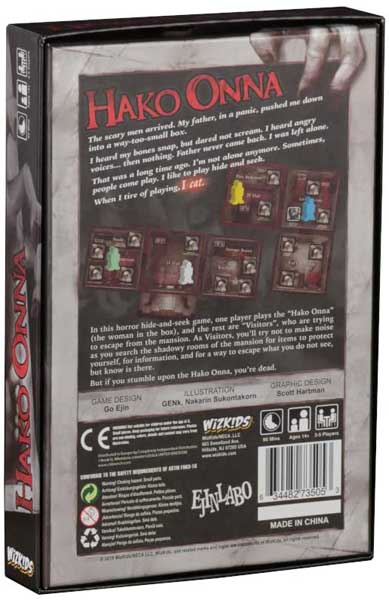 The Hit Japanese Game of Supernatural Horror, now in English for the First Time! Hako Onna is a game of horror hide-and-seek, translated from the 4th edition of the popular Japanese game. One player plays the “Hako Onna” (the Woman in the Box), and the rest are “Visitors”, who are trying to escape from the mansion. As Visitors, you’ll try not to make noise as you search the shadowy rooms of the mansion for items to protect yourself, for information, and for a way to escape what you do not see, but know is there. But if you stumble upon the Hako Onna, you’re dead.