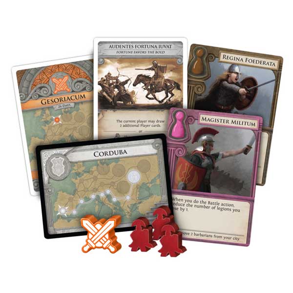 Simply defending Rome is not enough; players must find a way to stop the incursions and find peace with their neighboring peoples. Players collect sets of matching-colored cards to forge an alliance with the different tribes. In doing so, they gain the ability to use cards matching the tribe to convert other members of that tribe into Roman soldiers, furthering their ability to hold the line against other invaders.