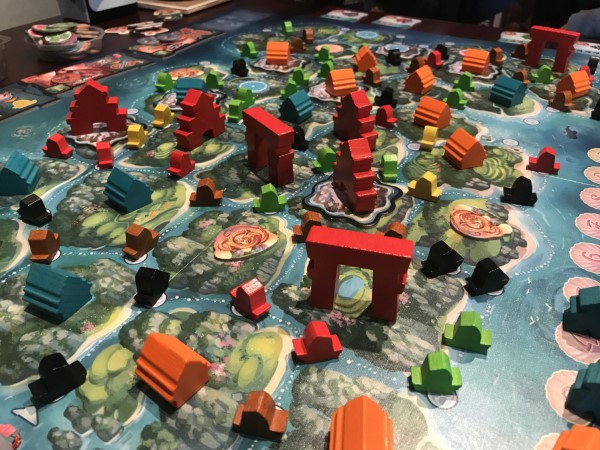 In Yamataï, players compete to earn prestige points using different strategies. Clear the different islands of the archipelago to recruit powerful specialists that will assist you, or use the resources carried by the boats that navigate between them to construct buildings on the islands! And, if you’re skilled enough, try creating prestigious buildings such as high temples or rare torii.