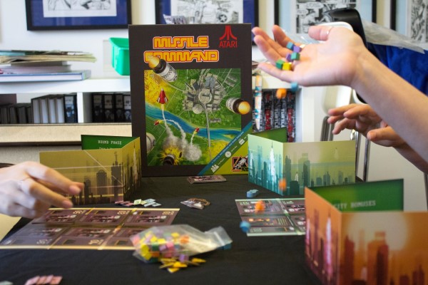 In Missile Command, 3 to 6 players venture into the world of the classic arcade game. Each player builds and deploys their supply of Missiles, Nukes and Interceptors on a mission to destroy as many enemy cities they can, while trying to protect their own.