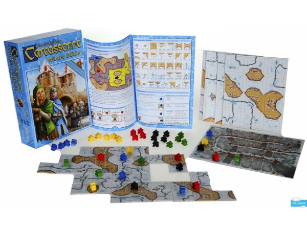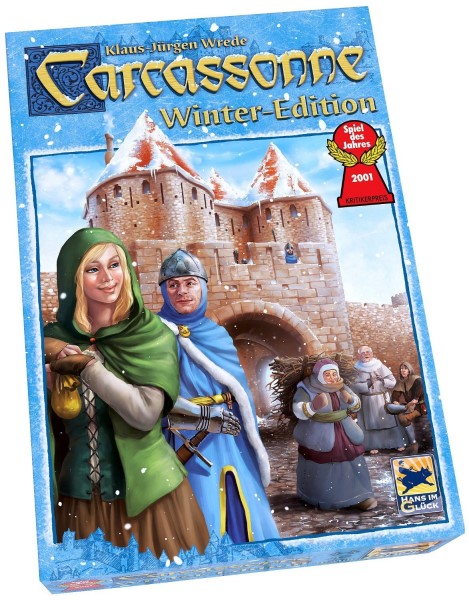 Carcassonne Winter Edition brings snow to the familiar Carcassonne setting, with knights still patrolling the cities, farmers still trying to feed the nation, and highwaymen who even travel on roads behind the city walls. Carcassonne: Winter Edition, which plays the same as the Carcassonne base game, includes the same 72 tiles as Carcassonne in addition to twelve new basic tiles.