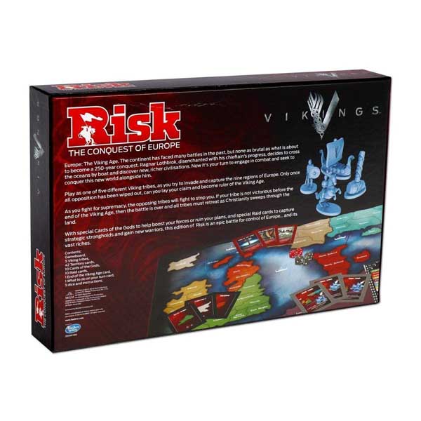 LET THE VIKING AGE BEGIN. The continent of Europe has faced many battles in the past, but none as brutal as what is about to become a 250-year conquest. Ragnar Lothbrok, disenchanted with his chieftain’s progress, decides to cross the oceans by boat and discover, richer civilisations. it’s your turn to engage in combat and seek to conquer this world alongside him. Play as one of five fully customised Viking tribes, including distinctly influential Viking longship game pieces, as you try to invade and capture the nine regions of Europe. With special Cards of the Gods to help boost your forces or ruin your plans and special Raid cards to capture strategic strongholds and gain warriors, this edition of Risk is an epic battle for control of Europe… and its vast riches. See you in Valhalla.
