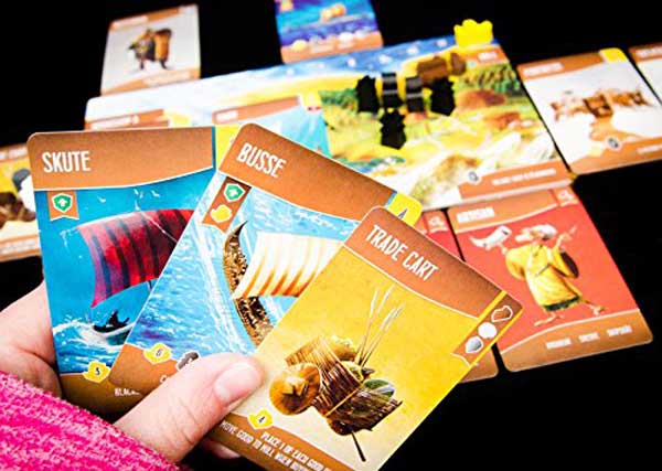 Shipwrights of the North Sea is set in the early years of the Viking Age, circa 900 AD. As Viking shipwrights, players compete to build the greatest fleet on the North Sea. Players must collect oak, wool and iron, as well as getting other craftsmen on board to help. Gold is a precious commodity, and must be spent wisely. As you would expect, the township is filled with an array of characters, bad and worse. Better hope they’re on your side!