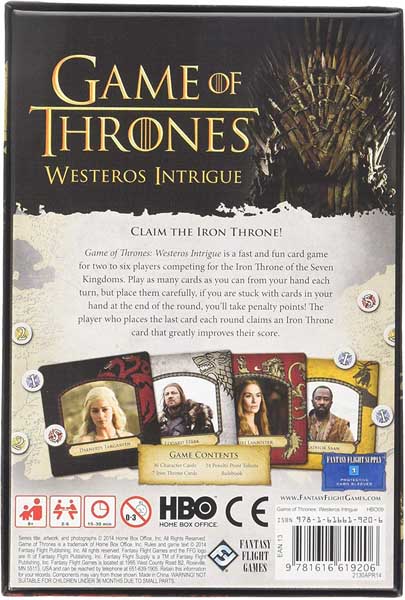 Game of Thrones: Westeros Intrigue is a fast-paced game of cards and intrigue at court, created by renowned game designer Reiner Knizia. Every game is played over a series of rounds, as you and your opponents play character cards in an attempt to claim the Iron Throne for yourselves.