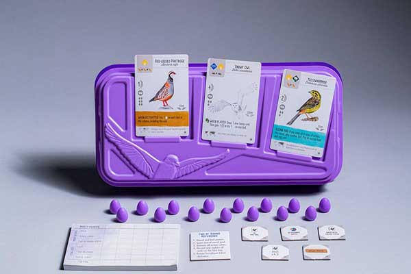 The European Expansion also includes an additional tray for storing the growing collection of birds (past, present, and future), as well as 15 purple eggs, extra food tokens, and a colorful new scorepad designed for both multi-player and single-player scoring.