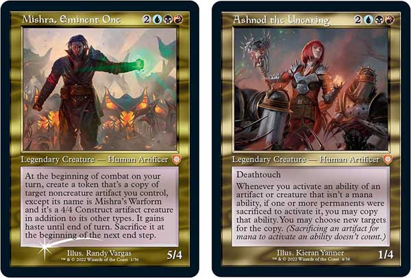 Urza: Urza is a legend across Dominaria, both cursed and revered. Long, long ago, Urza waged war with his brother, Mishra, and nearly destroyed his home plane in the process. A master of machines, he created an entire army with a relentless focus: victory.