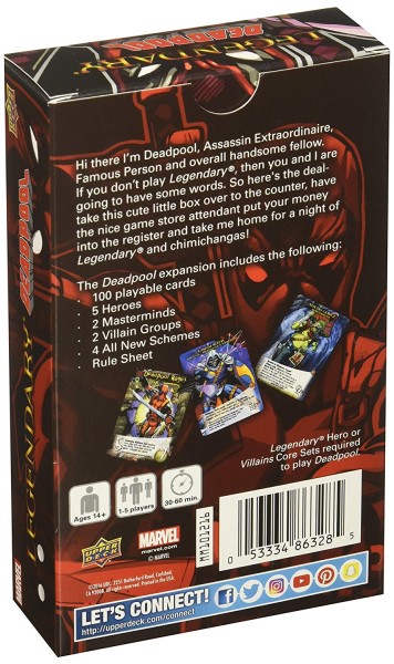 The Merc with a Mouth brings his charming personality, as well as a few friends, to the Legendary universe with Legendary: Deadpool, a 100-card, small box expansion.