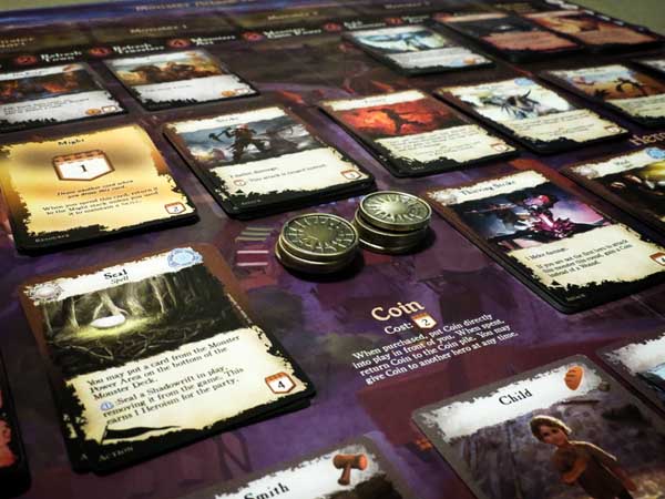 You, the heroes, must band together to drive them back. To do this, you will need powerful spells, skills, attacks and loot. When the game begins, you are a basic hero; you can explore and fight. Luckily for you, Shadowrift is a deck-building game! You can buy new cards to add to your deck, cards that will define you as an adventurer and complement the strengths of your fellow heroes. Unlike other deck-builders, there is constant interaction with your fellow players as you figure out who will gain which benefit from the limited supply of townsfolk, offer their coin to help construct walls, and seek healing from anyone who’s learned such magic.