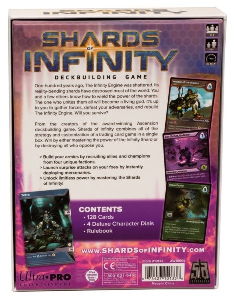 One-hundred years ago, The Infinity Engine was shattered and it’s reality-bending shards have destroyed most of the world! Now, it falls upon you to gather your forces, defeat your adversaries, and rebuild The Infinity Engine! Will you survive? From the creators of the award-winning Ascension deckbuilding game, Shards of Infinity combines an unprecedented level of strategy and customization into one small box. Build your armies by recruiting allies and champions from four unique factions. Launch surprise attacks on your foes by instantly deploying mercenaries. Unlock limitless power by mastering the Shards of Infinity!
