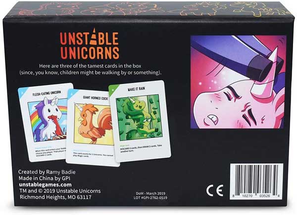 Warning: NSFW!!! (Unless your boss appreciates a good deck joke.) If 69% of your conversations involve dirty jokes and inappropriate COMMENTS, you’re going to love the new NSFW edition of Unstable Unicorns. The game play is the same as the beloved classic but the unicorns are significantly…Hornier. Are all the cards sexual? F*** neigh! Some are just delightfully disgusting.