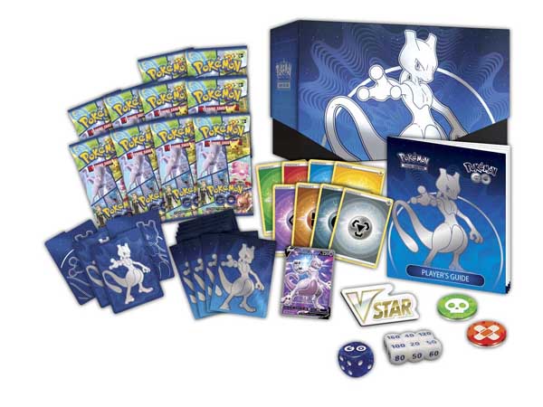 This Elite Trainer Box also includes plenty of other useful items for playing the Pokémon TCG. There are 65 card sleeves featuring Mewtwo to keep your deck in good condition, 45 Energy cards to power up your team, damage-counter dice and a coin-flip die, acrylic condition and VSTAR markers, and a player’s guide to the Pokémon GO expansion. It all comes in a sturdy collector’s box that’s perfect for storing your cards. You’ll be ready to go with this cool set!