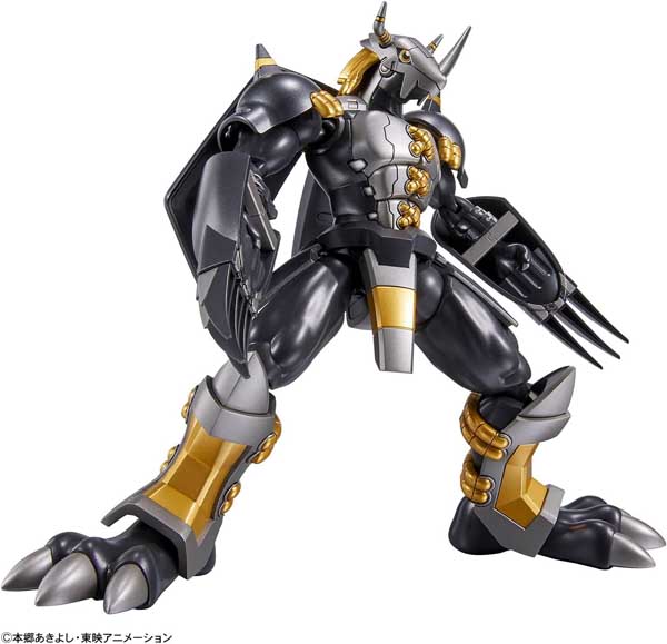 BlackWarGreymon from “Digimon Adventure 02” joins the “Figure-rise Standard” model-kit lineup from Bandai!  It’s fully posable after assembly, able to raise both arms, curve its chest and spread its legs for a powerful stance; its range of motion is so wide, it can wild the special moves “Gaia Force of Darkness” and “Dramon Killer”! The shield can be moved independently, and can be angled according to the pose. Stickers are included for the markings, too. Order this formidable warrior for your own collection today!