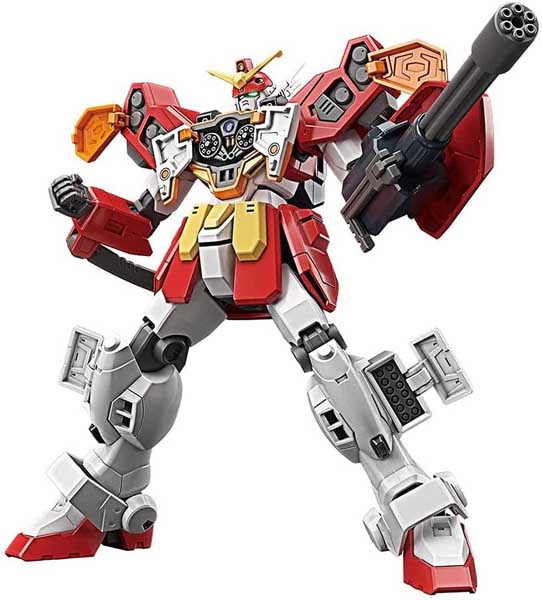 Gundam Heavyarms from “Mobile Suit Gundam Wing” brings its overwhelming firepower to Bandai’s latest HG model-kit format! With a wide range of motion possible on the frame from added articulation on the waist and leg joins in particular you can recreate many dyanmic poses. It’s equipped with various weapons such as its chest gatling gun, shoulder-mounted homing missile, leg micro missiles, etc. The Beam Gatling can be attached to the left arm and backpack; the right arm is equipped with an army knife. Display it in its Full Open configuration to display its full destructive capability — order yours today!