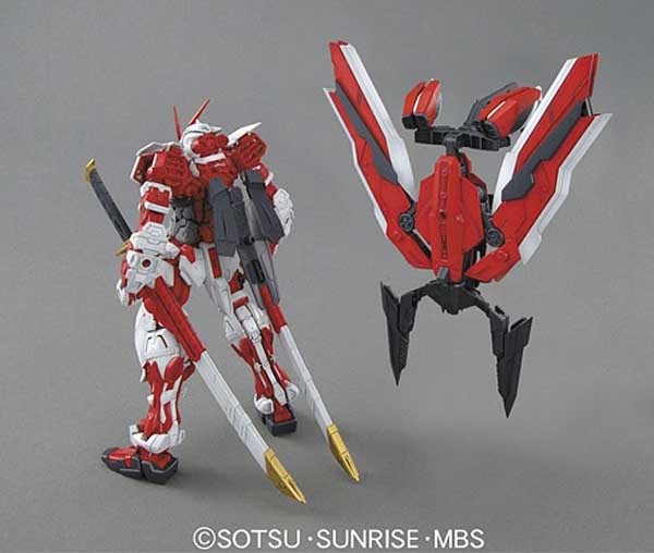 Like the Blue Frame, Lowe Guele’s Astray Red Frame Kai boasts amazing articulation through the generous use of poly-caps. Once assembled, this MG will be able to stand in a variety of poses wielding its weapons. Its backpack can easily take on a several forms with some simple changes. As ‘Tactical ArmsIIL’ it can change between Flight Form, Delta Form, and V form. Its Sword Form changes to Work Form, whereas Arrow Form takes the shape of a giant bow. The Beam Torch can be held in the mech’s hand or attached to the Arrow Form. The MG Astray also comes with its two signature katana; Gerbera Straight forged by Kiku Ichimonji and Tiger Pierce by Kotetsu. The two katana even feature signatures carved into the handles!! Two 1/100 scale figures of Lowe Guele, one sitting and one standing, are also included plus dry transfer decals and stickers for markings.