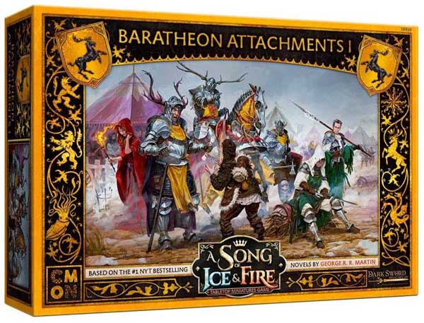 - The Baratheon Attachments 1 box gives House Baratheon players a host of new options when they’re building their armies, whether it’s for Stannis or Renly.
