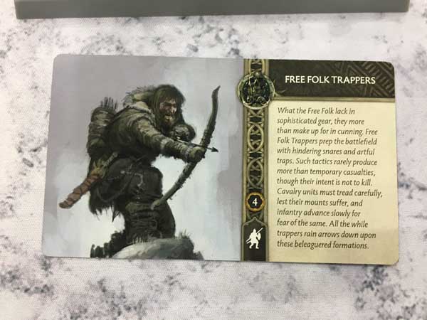 The Free Folk Trappers Unit Box gives Free Folk Commanders a new option for their armies. Lightly armed and armored, the Trappers are well-versed at harrying tactics. Able to deal wounds directly to enemy units via their Hidden Traps order, they can greatly disrupt an opponent’s plans. And being Insignificant, they aren’t worth victory points when destroyed, allowing Free Folk Commanders use them more dangerously, without worrying about giving them up to the enemy.