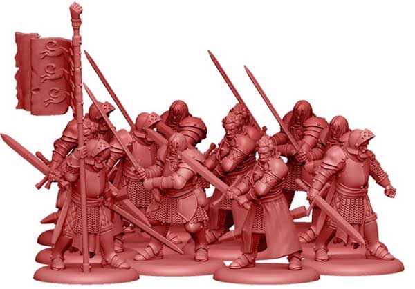 The Mountain’s Men Unit Box for the A Song of Ice and Fire: Tabletop Miniatures Game gives Lannister Commanders a new unit to add to their ranks. Their reputation alone can deal damage to enemy forces. The power of their swings with their greatswords means that they can potentially do two hits with each attack. And any unit charged by them instantly becomes Panicked. Truly nothing that enemy Commanders want to face.
