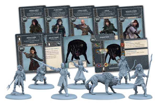 The Stark Heroes II set for the A Song of Ice and Fire: Tabletop Miniatures Game gives Stark Commanders a whole host of new options for their forces. Players can bring in the swordsmanship of the likes of Syrio Farel or his greatest apprentice, Arya Stark. Or perhaps they’ll want the cunning of Meera and Jojen Reed. For dog lovers, they could bring Rickon Stark and his direwolf, Shaggydog.