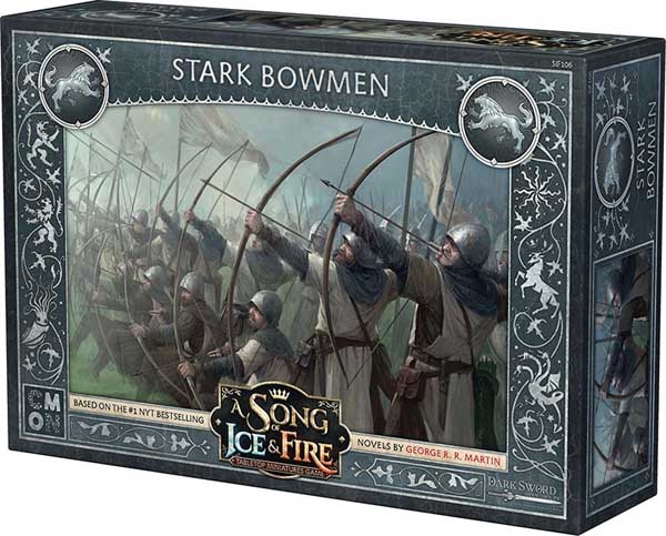 The Stark Bowmen Unit Box provides a long-range option for Stark commanders in the A Song of Ice and Fire: Tabletop Miniatures Game. Though very lightly armored and not equipped for melee, they more than make up for it with their ability to put volley fire at enemies. They can even ignore line of sight requirements, arcing their arrows high into the air to strike at hidden targets.