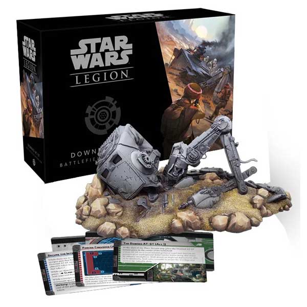 This expansion deepens your immersion in the Star Wars galaxy with a beautifully sculpted downed AT-ST miniature that joins the fabric of the battlefield itself, providing valuable cover for your troops no matter what planet they find themselves on. Additionally, six new battle cards invite you to make your crashed AT-ST a focal point of a two part scenario, bringing even more variety to your games of Star Wars: Legion.