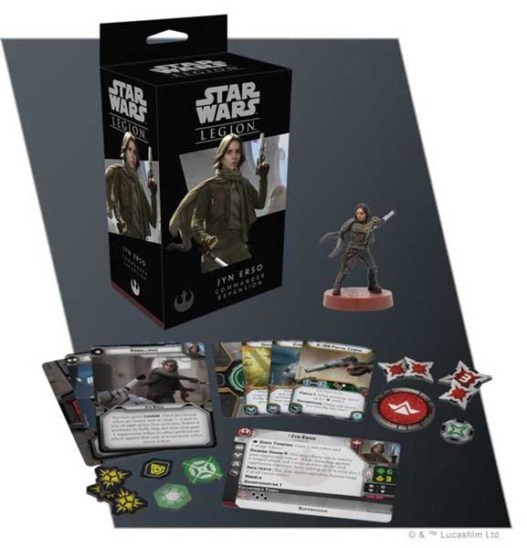 Within the Jyn Erso Commander Expansion, you’ll find one finely sculpted, easily assembled Jyn Erso miniature to lead your Rebel army into battle, complete with three new command cards. Along with Jyn Erso, you’ll find the associated unit card and four upgrade cards for you to enhance Jyn Erso and your other units.