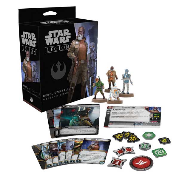 This expansion for Star Wars: Legion contains four finely sculpted Rebel specialist miniatures, along with new unit, upgrade and command cards. This expansion allows a player to field a generic Rebel commander unit and to add a comms specialist, medical droid, and astromech droid to other units in their army.